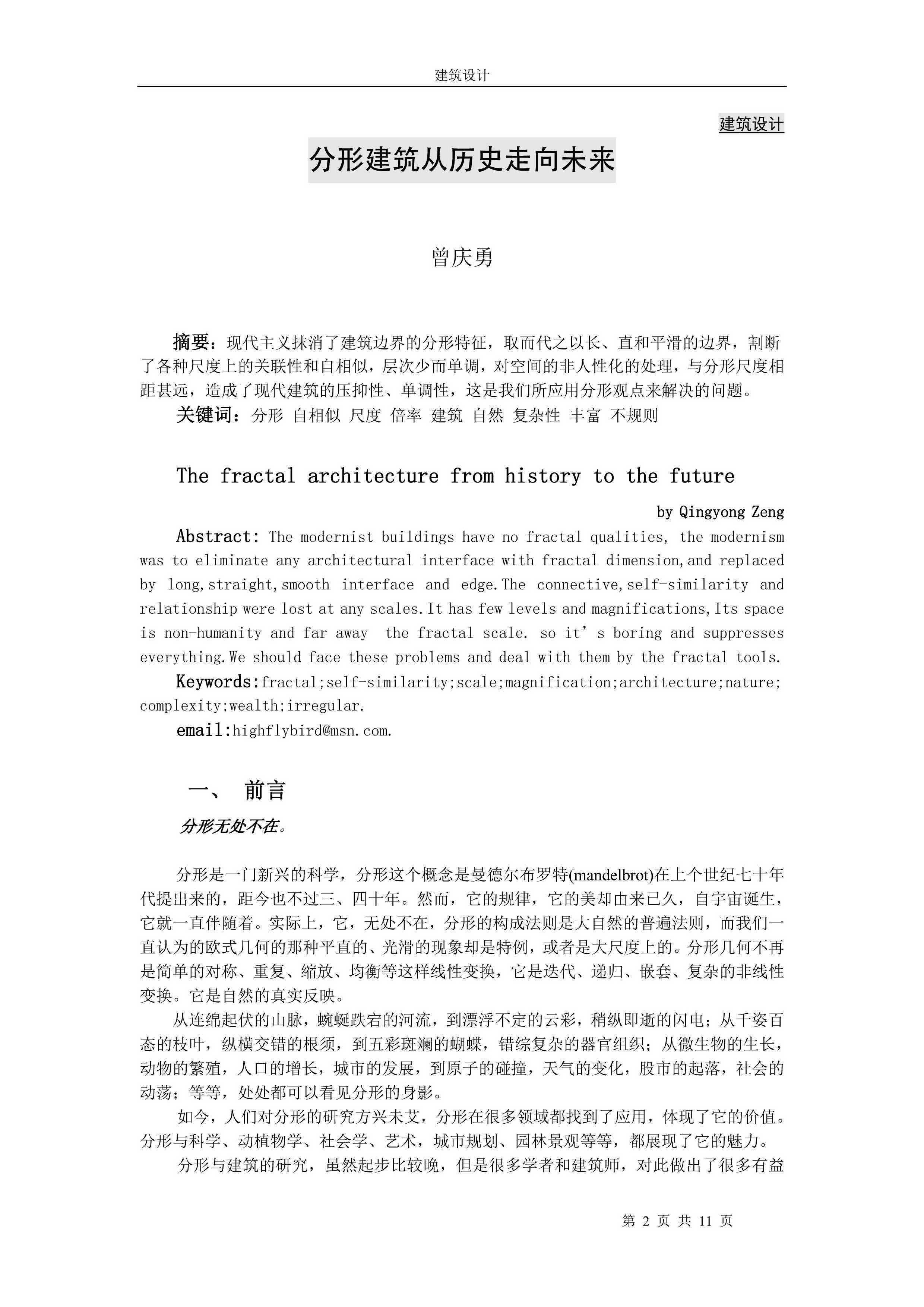 很久以前写的,论述分形和建筑的关系,现在不忍卒读。